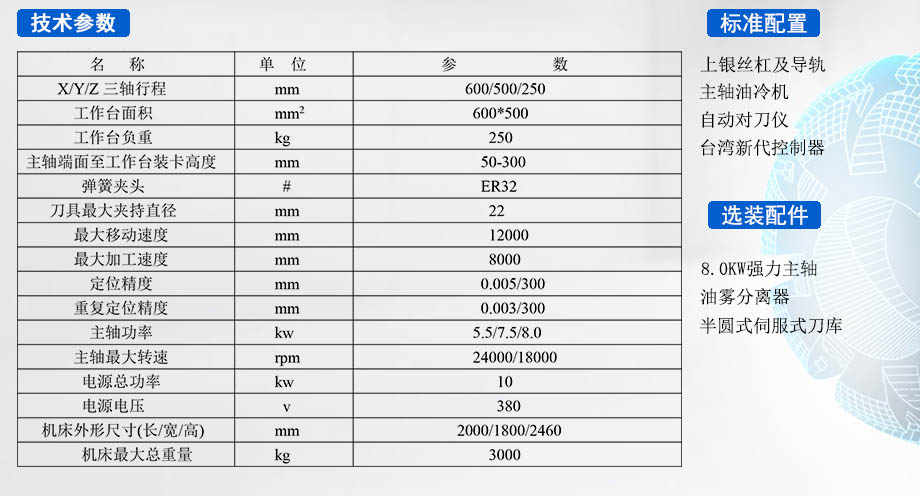 | X/Y/Z三軸行程 | 600mm*500mm*250mm |