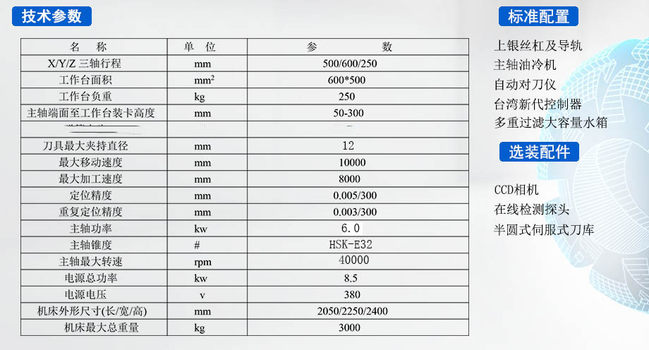 HSK4萬轉速主軸:提供高轉速的同時,還能提供不錯的扭矩輸出,特別適合加工表面光潔度要求較高的石墨模具等。